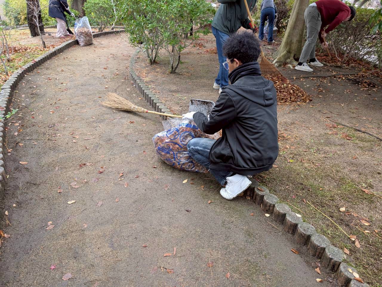 At our university, volunteers from the Otemae Volunteer Club and volunteer students from the general public have been participating since December 2023. On December 14, 2025, for the fifth time, five volunteer students from the Otemae Volunteer Club gathered at Oasis Road at 9:00 a.m. to clean up grass and trash soaked in the rain that had been falling since the previous day, together with local residents.