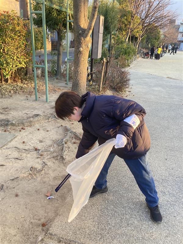 On the day, the students cleaned up mainly the sidewalks around the university and junior college, Morigu Park, and alleys in residential areas, carefully collecting trash such as cigarette butts and empty cans. With work gloves and garbage bags in hand, the participating students worked silently and cooperatively, contributing to the beautification of the area.