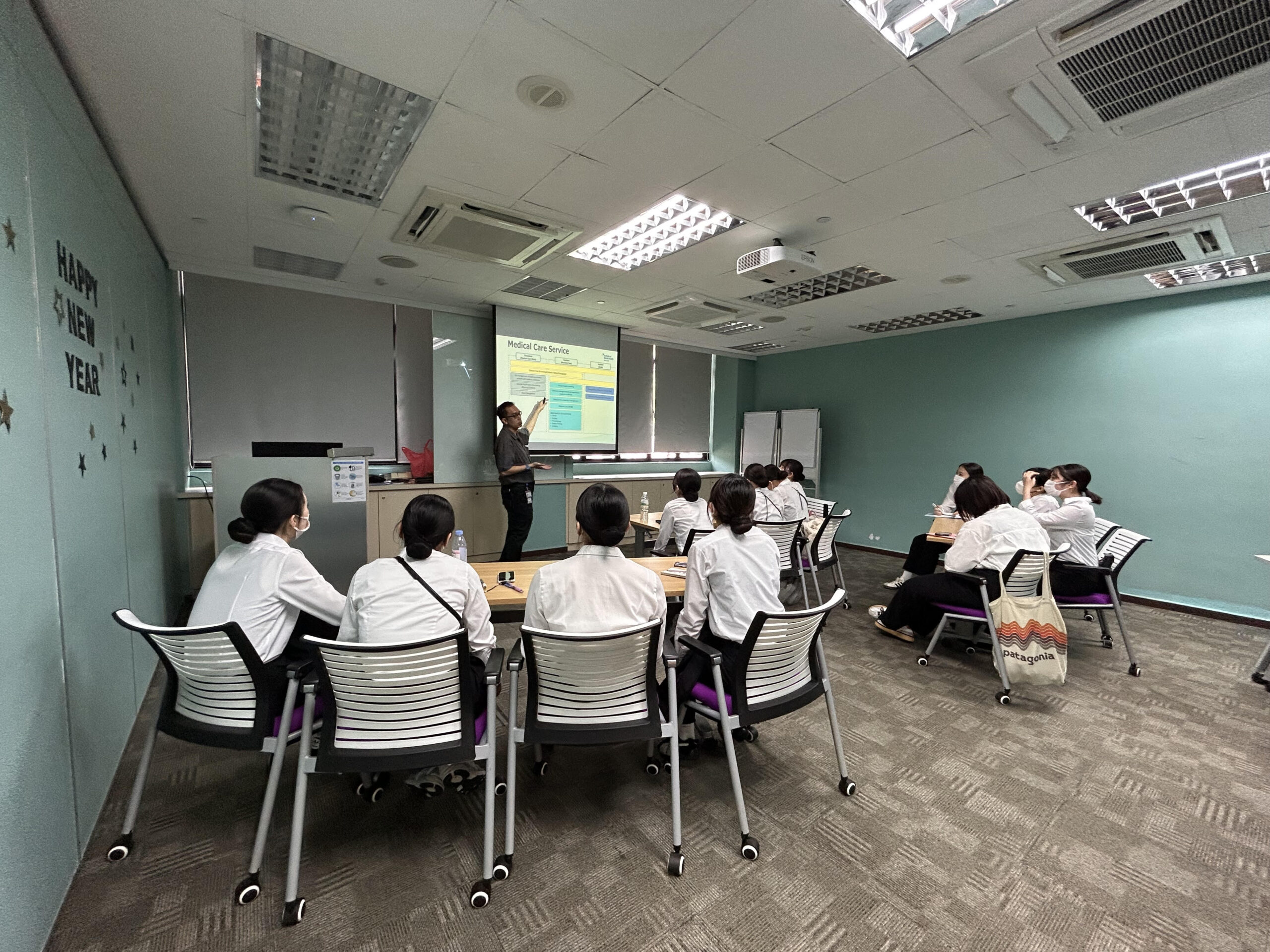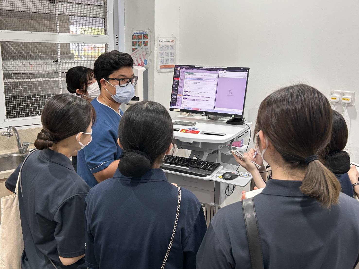 During the NYP training, students learned about Singapore's health insurance system and nursing in an aging society through lectures and facility tours. A distinctive feature of NYP's education is its emphasis on acquiring nursing practice and skills. Students experienced actual education through simulation training and considered the differences with Japan.