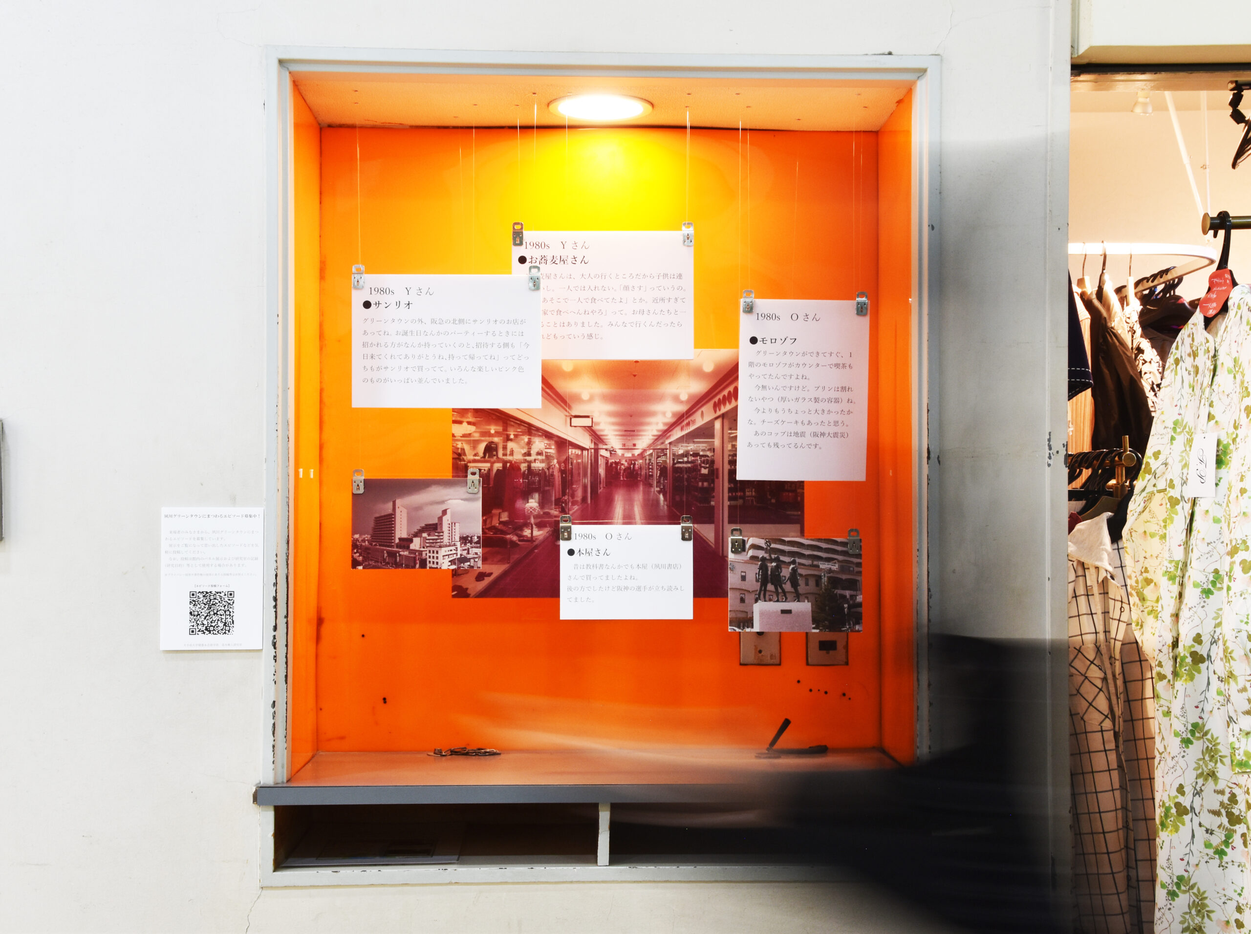 From March 26th to April 12th (Sunday), for 18 days, the results of these surveys will be exhibited as the "Shukugawa Green Town Everyday Memories Exhibition" in the orange public telephone booths on the basement floor to the 3rd floor of Shukugawa Green Town, as well as in the showcase on the 1st floor. Please come and see it.
