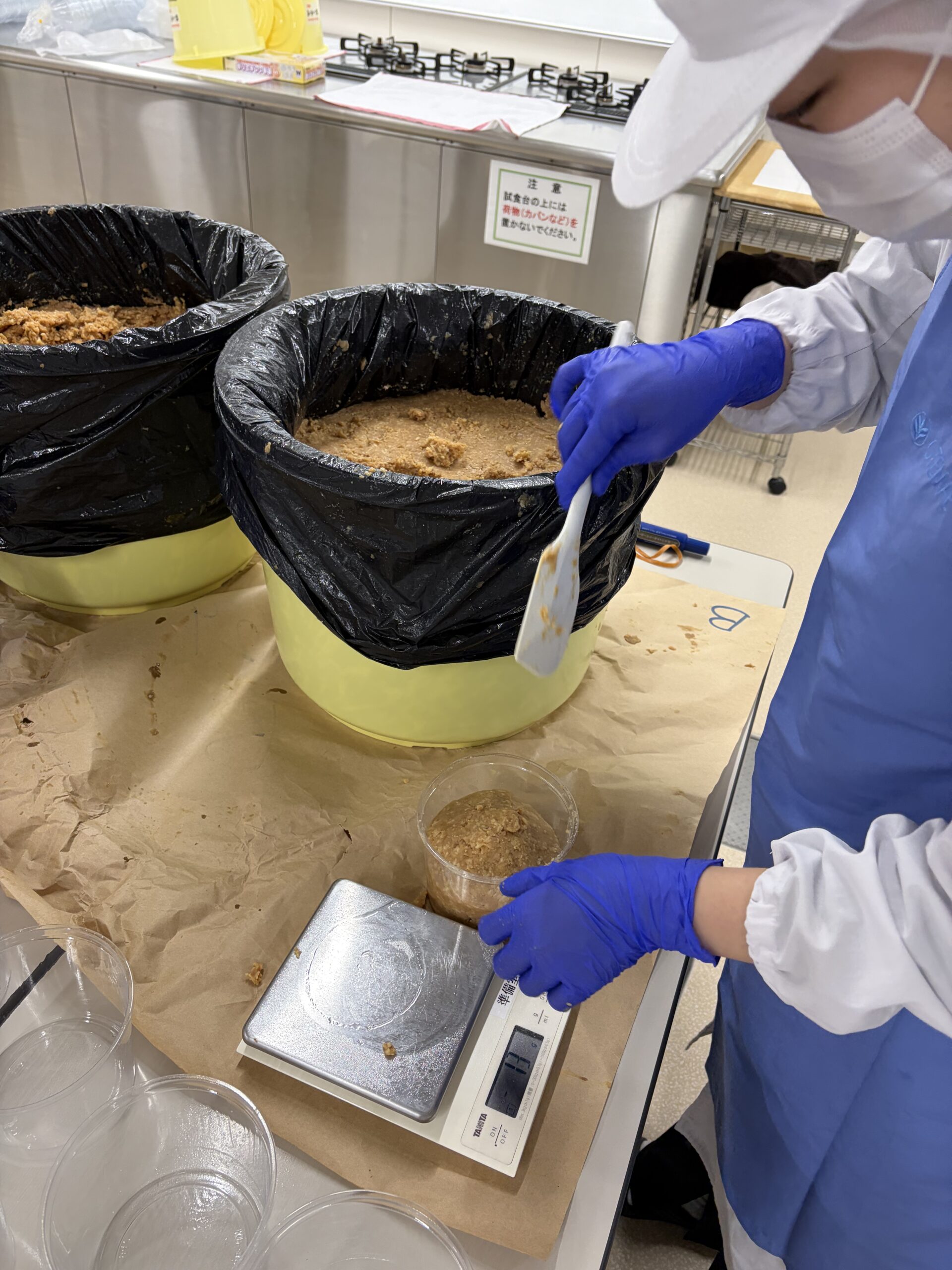 Miso making is part of the food processing practical class conducted in the fall semester of the third year, where students learn to make various processed foods.